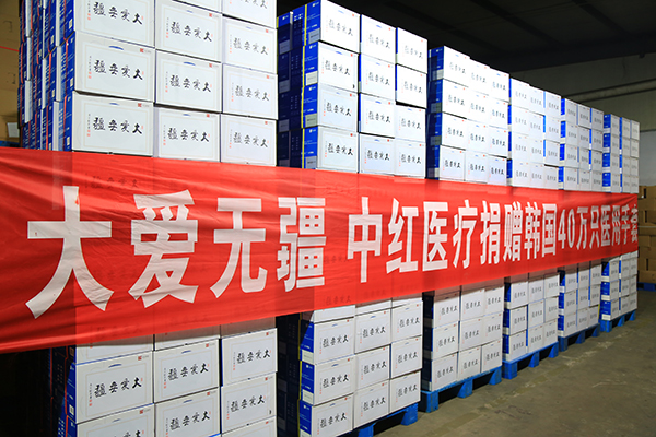 3月9日、11日,中紅普林40萬只醫(yī)療防護手套分兩批次整裝起運,馳援韓國抗擊新冠肺炎。