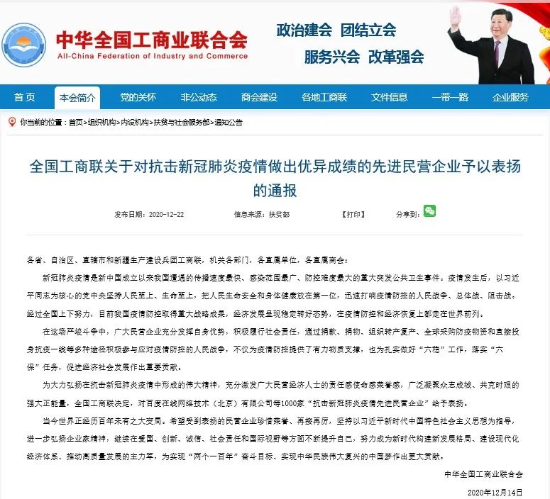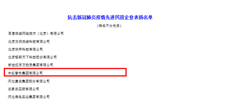近日,中華全國(guó)工商業(yè)聯(lián)合會(huì)發(fā)布了《全國(guó)工商聯(lián)關(guān)于對(duì)抗擊新冠肺炎疫情做出優(yōu)異成績(jī)的先進(jìn)民營(yíng)企業(yè)予以表?yè)P(yáng)的通報(bào)》,對(duì)“抗擊新冠肺炎疫情先進(jìn)民營(yíng)企業(yè)”給予表?yè)P(yáng)。中紅普林集團(tuán)因在疫情防控、復(fù)工復(fù)產(chǎn)、積極捐贈(zèng)等方面的成績(jī)獲得表彰,榮獲“全國(guó)抗擊新冠肺炎疫情先進(jìn)民營(yíng)企業(yè)”榮譽(yù)稱號(hào)。
